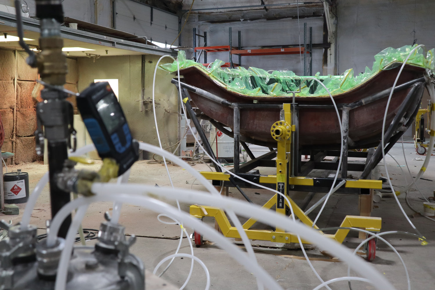 Our mold room operates using a variety of chemicals, primarily within the vinylester family, which quickly produce high-strength, lightweight parts with a gleaming, polished, in-mold coating finish. The protracted development of our manifolding, accumulation, power, and sensor systems has elevated our infusion procedure to new heights in both quality and time efficiency.